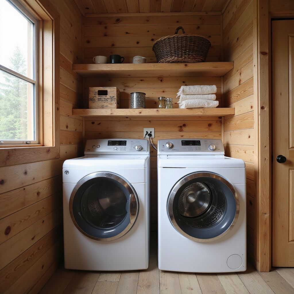 Laundry facilities inside the cabin add convenience for longer stays or active outdoor days.